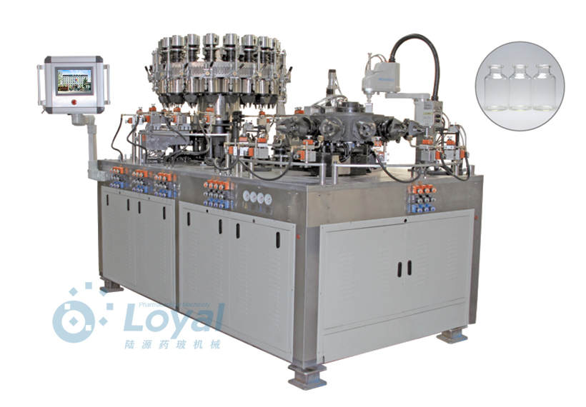 西林瓶生產(chǎn)線包括:自動(dòng)上管、自動(dòng)成型、經(jīng)機(jī)械手轉(zhuǎn)換至前端檢測(cè)線(也叫生產(chǎn)管控)、檢測(cè)線檢測(cè)的項(xiàng)目:1、瓶口內(nèi)外徑 2、瓶身長(zhǎng)短 3、瓶身外徑 4、瓶口邊厚 5、瓶底內(nèi)凹尺寸檢測(cè);經(jīng)檢測(cè)后的合格品再用機(jī)械手夾盤轉(zhuǎn)換至退火爐網(wǎng)帶上,經(jīng)高溫減除應(yīng)力后再降溫,通過氣動(dòng)吸盤將回火后的小瓶轉(zhuǎn)換至后端檢測(cè)線,后端檢測(cè)(也是重檢也叫終檢),經(jīng)后端拍照檢測(cè)項(xiàng)目
